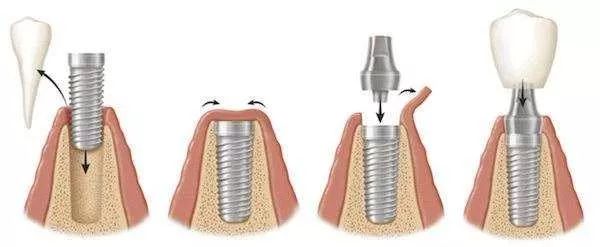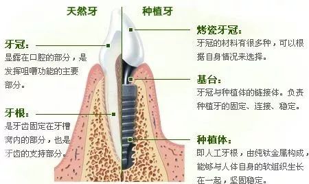 种植牙 人工种植牙又称种植义齿,它是用生物材料制成的一种仿生牙,分为植入人体颌骨内起支持固定作用的种植体(即牙根部分)和承担咀嚼作用的牙冠两部分